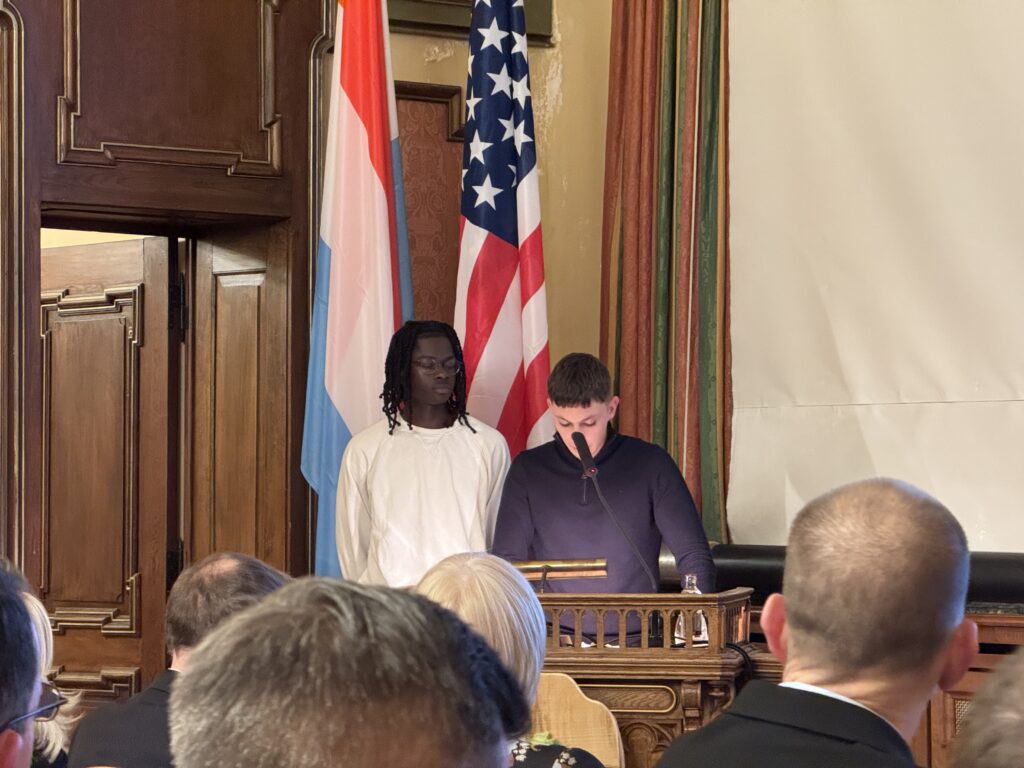 De 5. Dezember huet de Patton Musée hei vun Ettelbréck, zur Occasioun vum 80. Doudesdag vum Generol Patton, eng Séance académique organiséiert. Am Kader vun der Optioun ‘Memory Walk’, déi dëst Joer fir Schüler*Innen vun den 3GSO- an 3GSN-Klassen am LTEtt ugebuede gëtt, sti mir a Kooperatioun mam Patton-Musée an 2 vun eise Schüler hunn dierfen eng interessant Ried, déi si zesumme mat hirem Enseignant Alain Penny geschriwwen hunn, virdroen. Am Publique souzen eng ganz Rei Éieregäscht: Membere vun der Patton Famill, verschidden Ambassadeuren, ënnert anerem aus Amerika, esouwéi d’Madamm Minister Hansen, den Här Minister Thill a Vertrieder vun der Gemeng Ettelbréck. Den LTEtt war duerch 2 Direktiounsmemberen vertrueden. Mir soen eise Schüler villmools Merci fir hier Bedeelegung un dësem wichtegen, historesche Sujet.