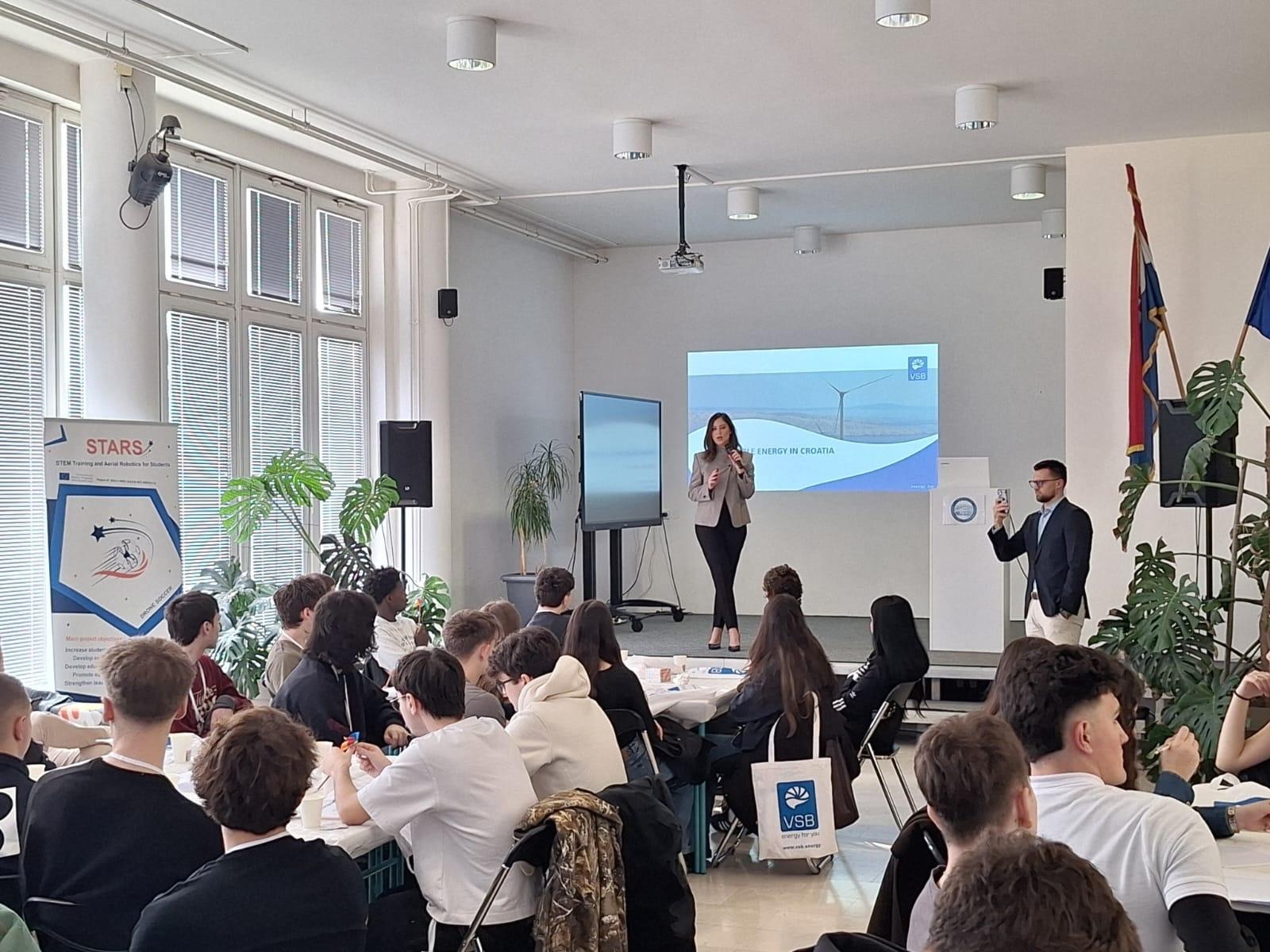 After lunch, we returned to the school, where two representatives of VSB, a local wind energy company, gave us a presentation about wind turbines and wind power in Croatia.