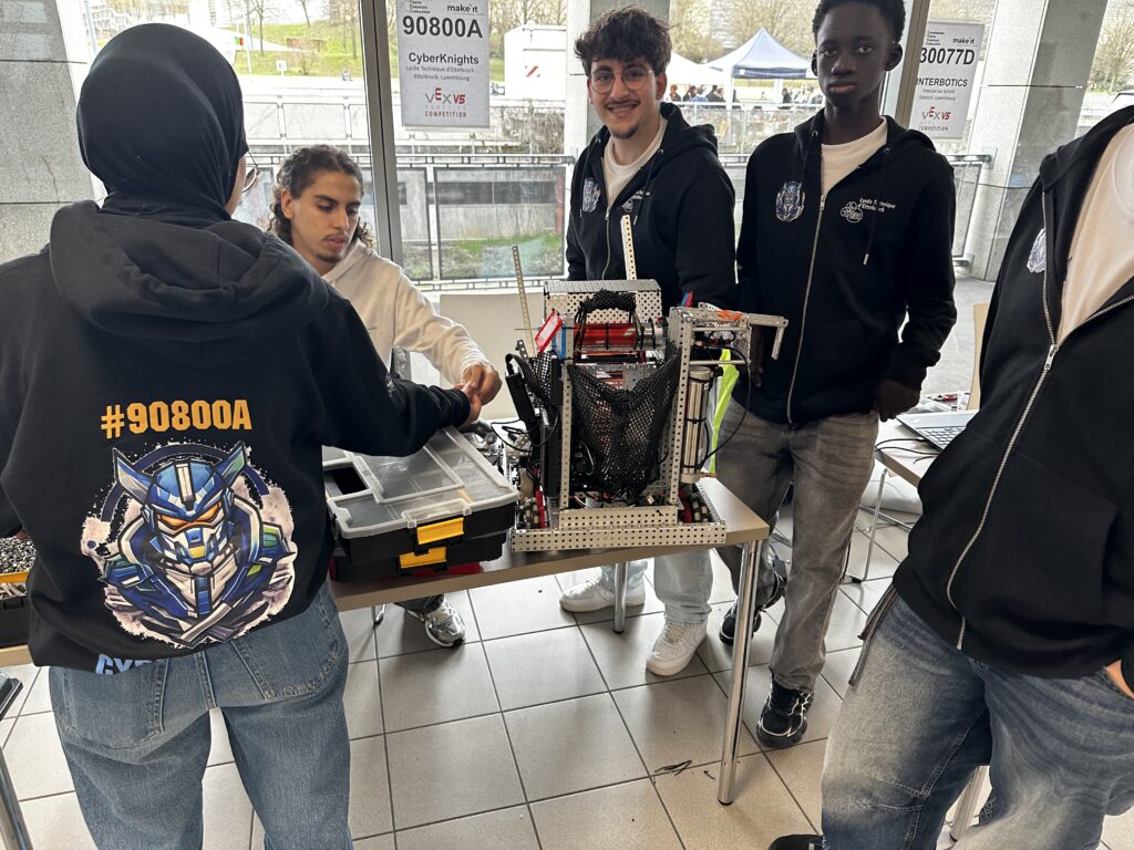 Le 28 février s’est tenue la compétition nationale luxembourgeoise de robotique, le LYRC, au Lycée Aline Mayrisch. Notre équipe de robotique, les CyberKnights, y a participé et a réussi à se hisser jusqu’en finale, remportant ainsi le titre de champion national !