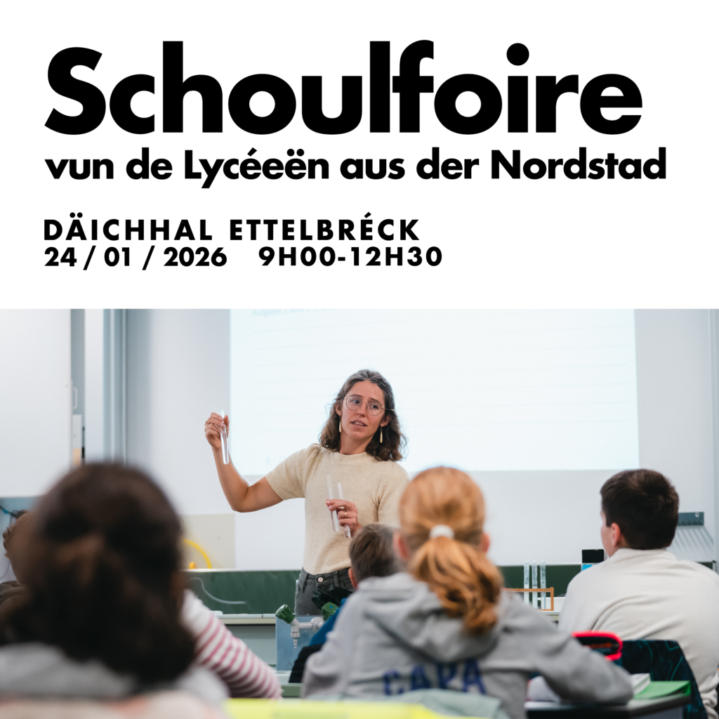 D’5 Lycéeën aus der Nordstad invitéieren op hir Schoulfoire, fir de Schüler aus dem Cycle 4 an hiren Elteren op Froen ze äntweren an allen Interesséierten d’Schouloffer ze presentéieren.